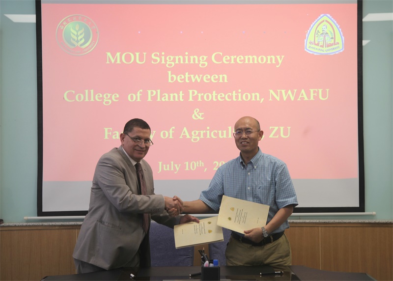 7月10日上午,我校英国上市公司官网365与埃及扎加齐克大学(Zagazig University)农学院合作备忘录签约仪式在学院第二会议室举行,签约仪式由院党委书记张俊杰主持,院领导班子成员、教师代表及行政办公室人员参加了会议。