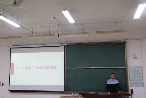 典礼结束后,特邀请马克思主义学院杨鹏副教授作了《聚焦党的十九大》专题辅导报告,从党代会的常识、我的直观感受、十九大简介、十九大报告中的“新”等方面对十九大进行了详细解读。
