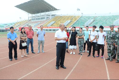 2019年9月7日,英国上市公司官网365胡小平院长在戴武副院长、闫建兴副院长、马志卿副院长、张艳玲党委副书记的陪同下前往英国上市公司官网365北校区田径场探望植保19级新生军训情况。